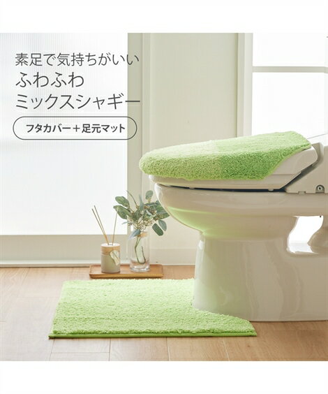 トイレマット セット フタカバー ふかふか ミックスシャギー トイレタリー 2点セット オレンジ/グリーン/ブラウン ロングマット/洗浄 暖房型用 ニッセン nissen