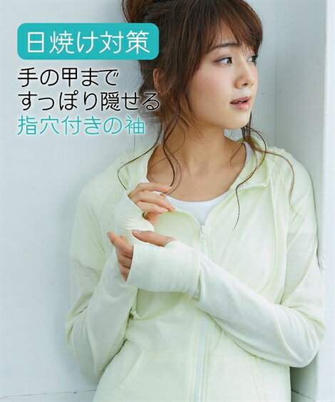 トップス・チュニック 吸汗速乾・UV スラブ天竺指穴付ジップパーカー(レギュラー丈) ニッセン nissen